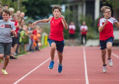 Am Samstag hiess es zuerst für die Auwer Schülerinnen und Schüler sich warm zu laufen. Nach einem gemeinsamen Einwärmen mit Vivienne starteten um 10.00 Uhr die Schülerwettkämpfe für die 73 teilnehmenden Kinder. Nach den verschiedenen Disziplinen 60m, Weitsprung/ Sackhüpfen, Hindernislauf und Ballwurf/ Zielwurf, fanden im Anschluss die A und B Finale der «schnellschte Auweri/ schnellscht Auwer» statt.