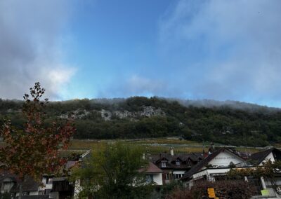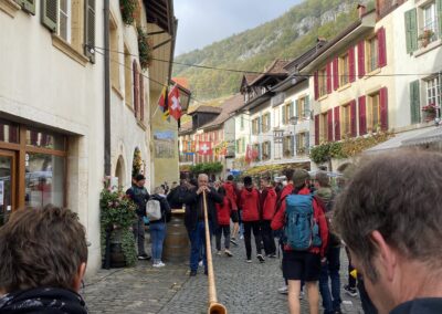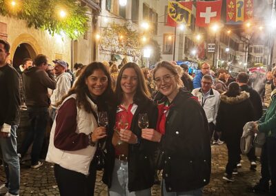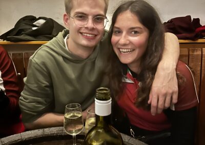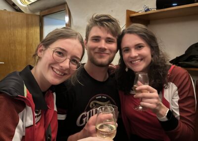 Nach einer 2-stündigen Reise, trudelten wir kurz nach Sonnenuntergang auf dem Winzerfest ein. Kurz nachdem wir unser Gepäck in unserer Unterkunft, der Zivilschutzanlage, deponiert haben, eröffneten wir den Abend mit dem ersten Glas Chasselas, welcher sogar aus dem Jahr 2020 stammte! Die Verpflegung folgte an den verschiedensten Essensständen. Raclette, Flammkuchen, Burger oder Fischchnusperli, es gab garantiert für jeden etwas zu knabbern. Traditionell wechselten wir in den Turnerkeller des TV Twann und köpften weitere Flaschen. Wie zu denken ist, kamen wir nicht unbedingt früh ins Bett und das Aufwachen war dementsprechend auch nicht wirklich leicht.