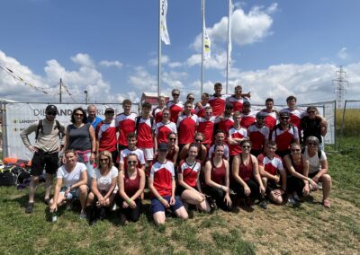 Kurz vor dem Mittag erschien die Sonne in voller Pracht und ließ die 800 Meter Läufer und Läuferin schon schwitzen, bevor der Startschuss fiel. 2,5 Runden mussten auf der Bahn absolviert werden. Der Rasen hatte kleine Unebenheiten aber war im Vergleich zu letztem Jahr sehr angenehm zu laufen. Nach dem Startschuss liefen alle zusammen los, kurze Zeit später teilte sich das Feld in zwei Gruppen. Auf den letzten 200 Meter kam es zu einem Kopf an Kopfrennen. Der erste Athlet beendete den Lauf mit einer sehr guten Zeit von 2.13, die nächsten 2 waren gleichauf mit einem Rückstand von 2 Sekunden. Die anschließenden Zieleinläufe wurden nochmals richtig angefeuert. Erschöpft und gleichzeitig glücklich über die Zeiten erreichten wir eine Note von 8.62, wovon 4 Läufe über einer 9 waren.
