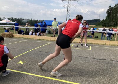 Auf einem perfekten Rasen wurde die Pendelstafette über 85 Meter ausgetragen. Die schnellsten Läufer machten sich an den Start. Nach dem Startschuss sprintete unser Frontman mit vollem Speed los. Einige Übergaben waren knapp, aber es gab keine Fehler. Nach 2 Minuten und wenigen Sekunden lief unsere Schlussläuferin im Ziel ein. Auch mit diesem Resultat von 8.6 waren wir für die wenigen gemeinsamen Trainings zufrieden.