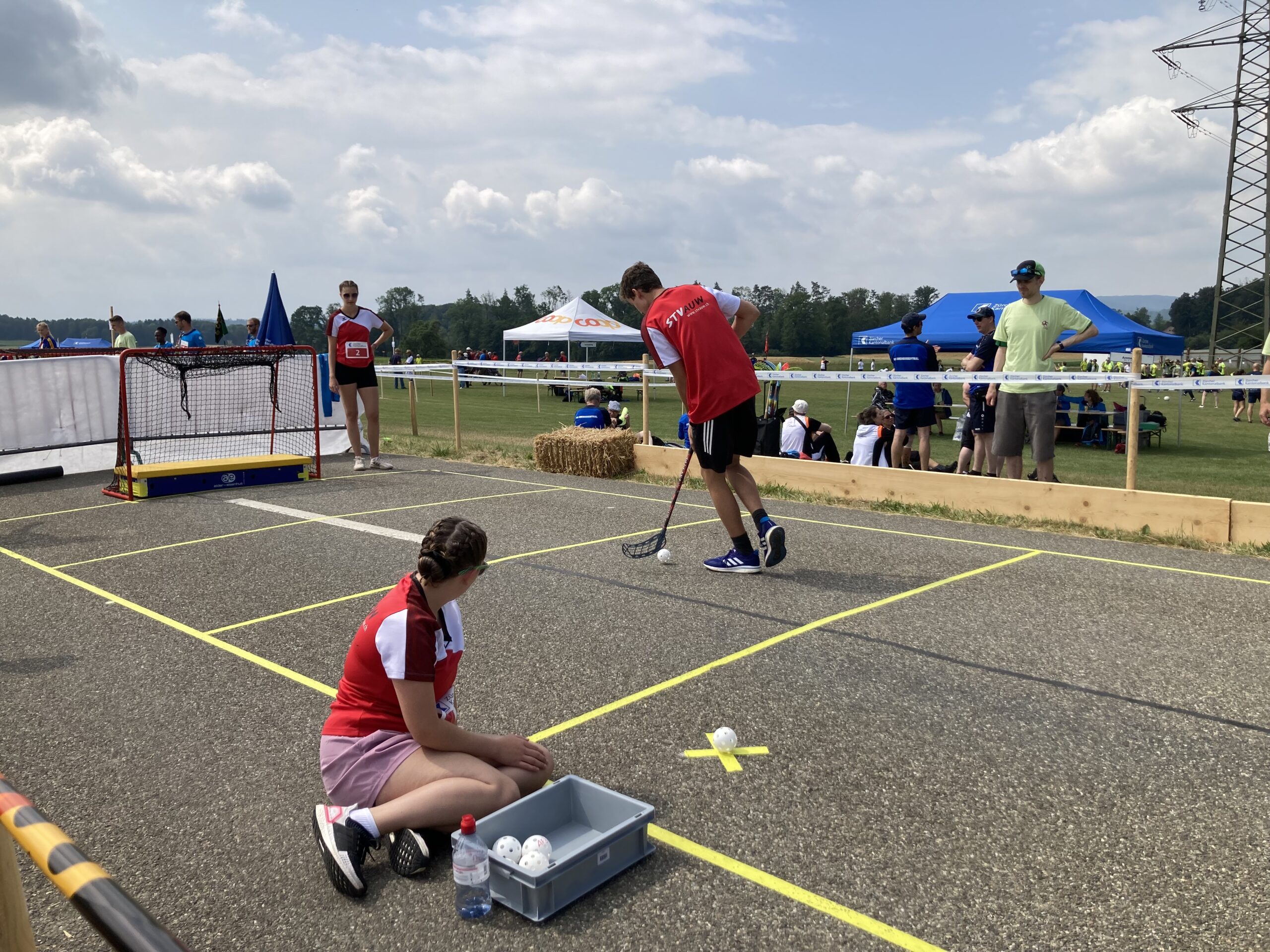 Die Wettkampfanlage beim Fachtest Unihockey war alles andere als perfekt. Eine gewölbte, unebene Hauptstrasse machte das Ganze schwieriger. Der Ball änderte schnell und unvorhersehbar seine Richtung, spickte von links nach rechts, aber unsere Jungmannschaft machte das Beste daraus. Sie waren mit ihrem Ergebnis nicht ganz zufrieden. Über die beiden Übungen erzielten sie eine Gesamtnote von 7.34.