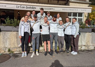 Am Sonntagmorgen klingelte bereits um 8:00 Uhr der Wecker. Das Aufstehen war für einige nicht so leicht. Nach dem Zusammenpacken schlenderten wir gemeinsam zur Bäckerei, wo wir unser Frühstück genossen haben. Danach war es bereits Zeit fürs Aufwärmen. Gemeinsam joggten wir die Stafettenstrecke ab und schauten uns die, am Vorabend «gelöselten», Streckenabschnitte an. Schon bald starteten die Stafetten und wir konnten die ersten paar Gruppen anfeuern. In der 6. Serie war unser Mixed-Team an der Reihe, welches die Stafette mehr oder weniger erfolgreich abschliessen konnte 😉