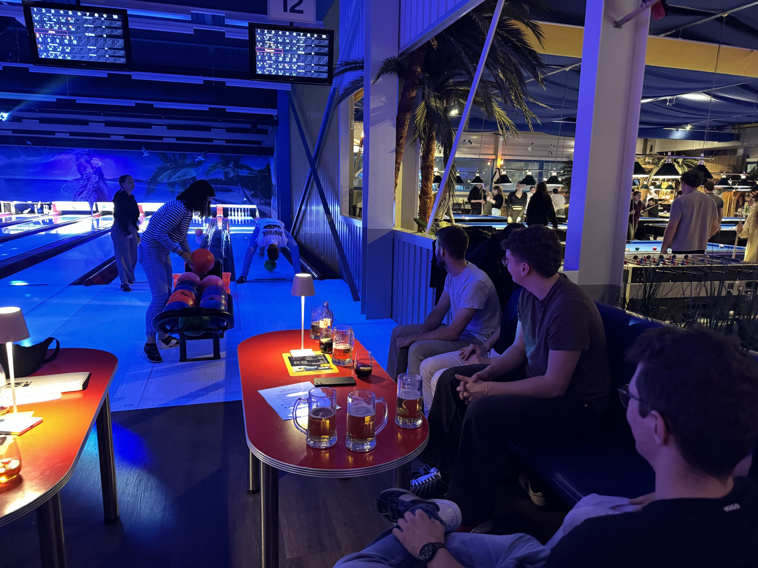 Einmal nicht in der Turnhalle, dafür in der Bowlingarena war der Turnverein Auw anzutreffen. Um halb 8 traf sich die Gruppe und fuhr Richtung Meierskappel. In der Arena bekam jeder passende Schuhe und es konnte losgehen. Mit 2 reservierten Bahnen rollte immer eine Kugel. Mit guter Stimmung kamen dann auch immer bessere Ideen auf, wie die Kugel auch noch gebowlt werden kann. So wurde getestet, wer zum Beispiel das bessere Gefühl mit der schwächeren Hand hat. Eine weitere Herausforderung stellte sich, als das «Kroki» in den Vordergrund rückte. Wer den Winkel am besten ausgerichtet hatte, traf jedoch nicht die meisten Kegel, aus wahrscheinlich Baulichen Bedingungen. Nach 2 Runden haben wir die Bahn dann verlassen in Richtung der Couches, wo die interessanten und lustigen Gespräche gingen weiter. Als die Rechnungen alle beglichen hatten, ging es bereits auf Rückreise nach Auw. Die Einten zog es nach Hause, die Anderen dann doch noch in die Turnhalle, um auf die gute Leistung der Vereinskollegen beim Unihockeyturnier anzustossen.