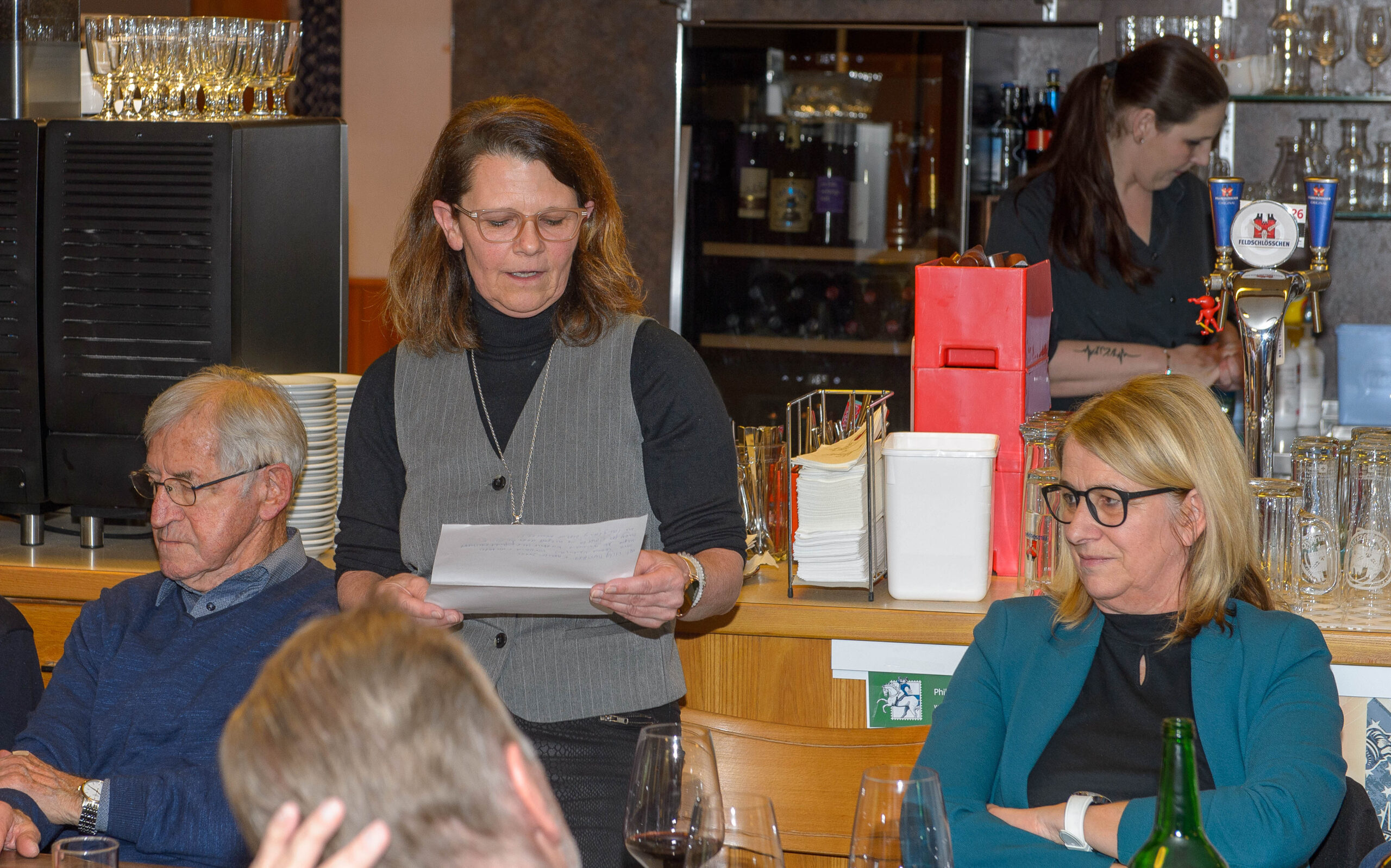 Auch diese Jahr hatten wir wieder full-house mit 61 Personen. Das Restaurant Kreuz in Meienberg reservierte das gesamte Restaurant für uns, sodass wir mehr als genügend Platz für alle Teilnehmer:innen hatten. Das Team verwöhnte uns mit einer feinen Flädlisupper und einer grossen Portion Braten mit Kartoffelgratin mit grosszügigem Nachservice – vielen Dank für die vorzügliche Bewirtung!