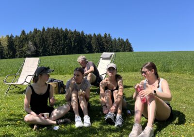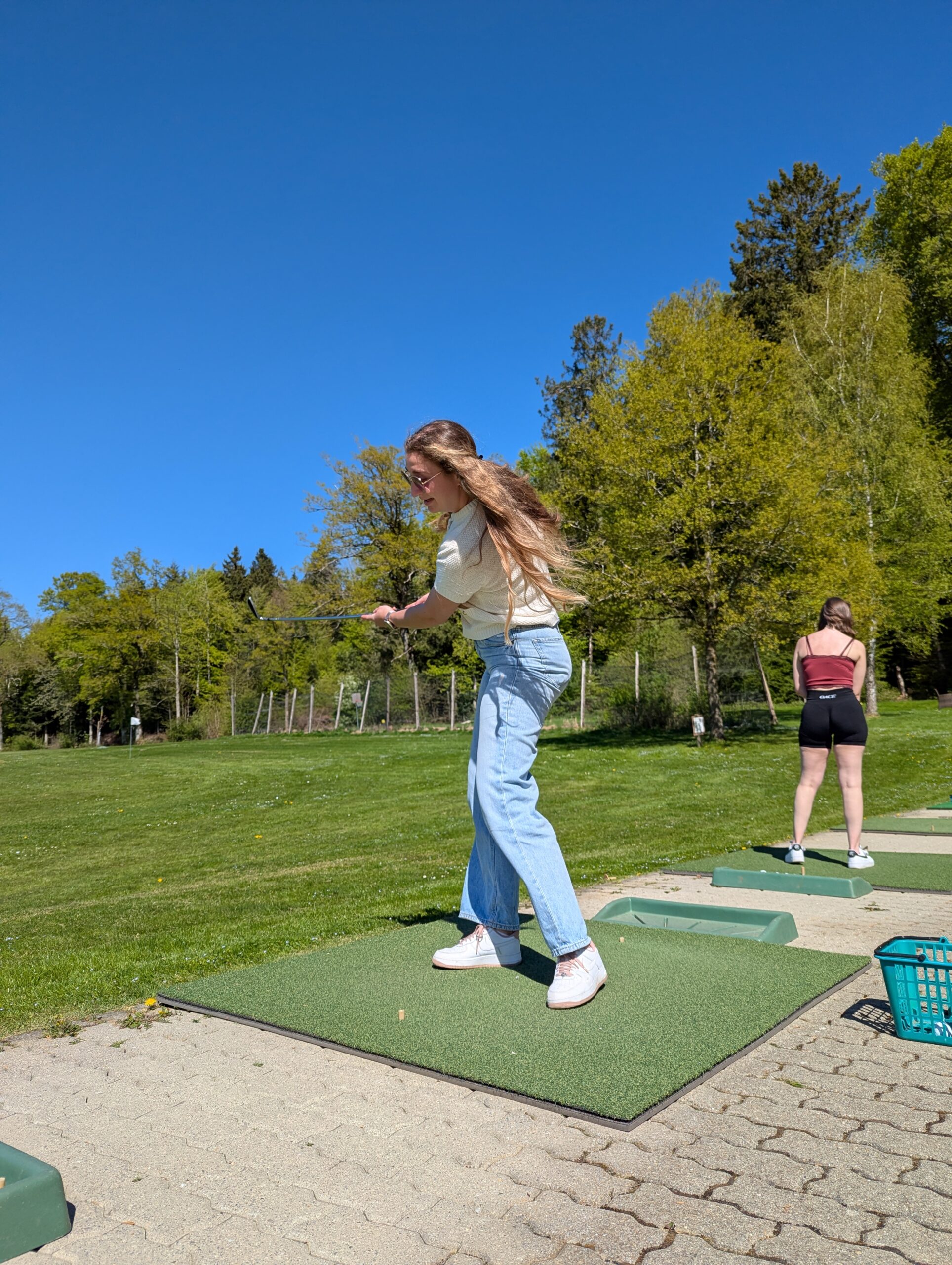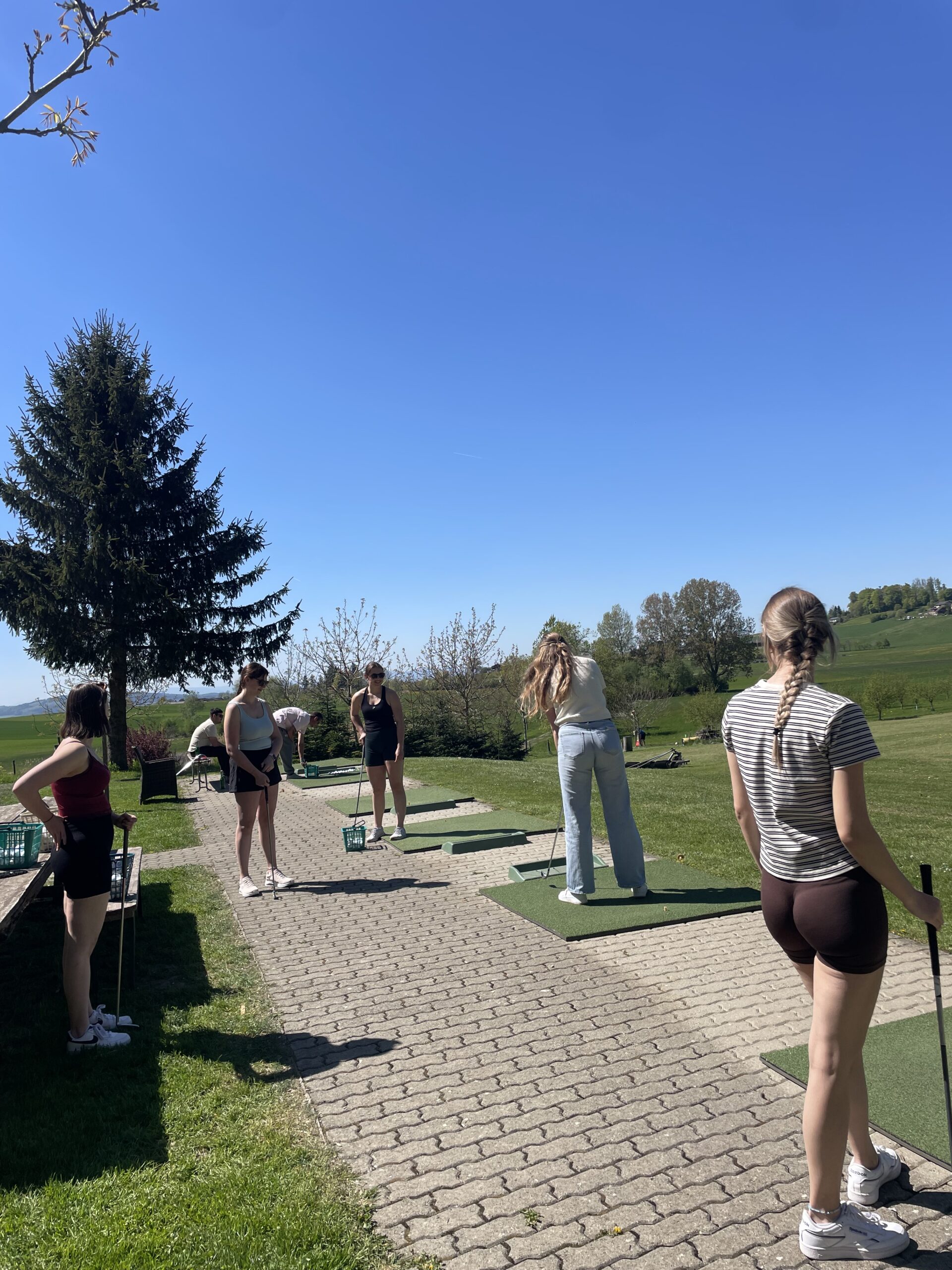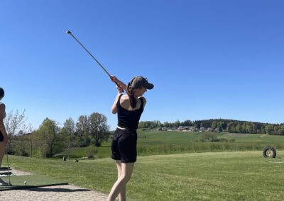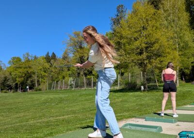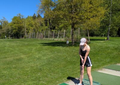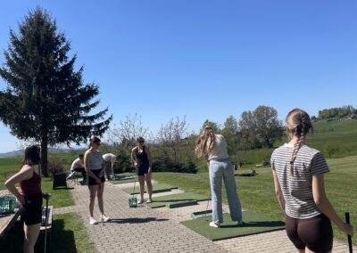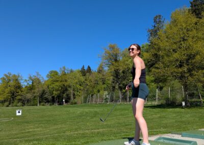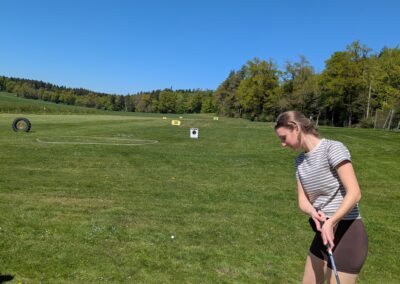 Auch dieses Jahr gab es wieder einen Frauentag. Acht Frauen vom STV Auw trafen sich am Samstagnachmittag im Mehrzweckgebäude. Mit den Velos fuhren wir bei schönstem Weter auf den Horben und genossen eine kleine Pause im Nussbaum-Beizli. Anschliessend ging es weiter nach Müswangen auf den Bauernhof Holzmatt. Wir packten Schläger und Golfbälle und versuchten unser Glück im Golf-Abschlag. Nach dem Golfen und einem kleinen Apero ging es für uns wieder zurück nach Auw. Zum Znacht gab es ,,Wok-Pfändli” und irgendwann ging der Abend mit lustigen Gesprächen zu Ende.