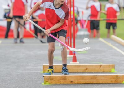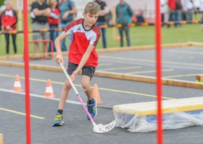 Der erste Wettkampfteil beinhaltete den Unihockeyparcours und die Pendelstafette. In diesen beiden Disziplinen konnten wir eine Note von 9.74 erreichen. Mit diesem ersten Ergebnis waren wir sehr zufrieden. Im zweiten Wettkampfteil ging es mit Weitsprung und Spieltest Allround weiter. Auch in diesem Teil lief es wie am Schnürchen und es wurde eine Note von 9.82 erzielt. Wir konnten uns kein besseres Zwischenergebnis vorstellen. Für den letzten Wettkampfteil motivierten wir die Kinder noch mal alles zu geben. Die letzten zwei Wettkampfdisziplinen waren Ballwurf und Hindernislauf. In diesen Disziplinen erreichten wir die gute Note von 8.70. Mit dem Endergebnis von 28.39 konnten wir nur Vermutungen aufstellen, dass es vielleicht aufs Podest reichen könnte, denn am Sonntag turnten noch weitere Vereine.