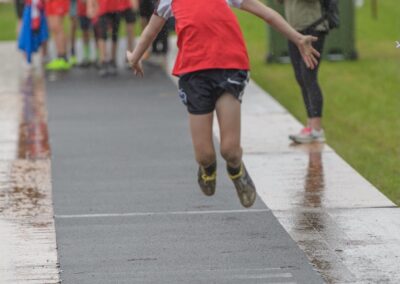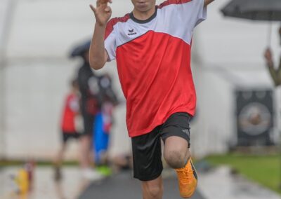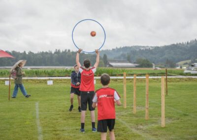 Bereits am frühen Morgen waren die Wetterbedingungen alles andere als ideal. Dunkle Wolken zogen auf und der Regen setzte bald ein. Doch weder die Organisatoren noch die jungen Turnerinnen und Turner liessen sich davon beirren. Mit wetterfester Kleidung, guter Laune und einem unerschütterlichen Teamgeist starteten die Auwer JUSPO-Kids in den Wettkampf.