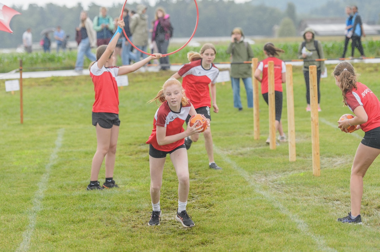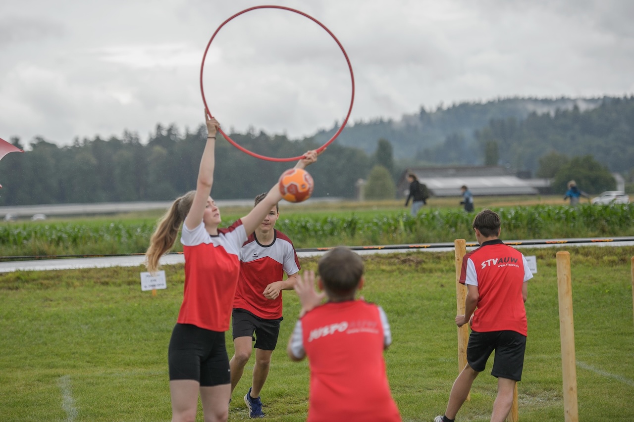 Bereits am frühen Morgen waren die Wetterbedingungen alles andere als ideal. Dunkle Wolken zogen auf und der Regen setzte bald ein. Doch weder die Organisatoren noch die jungen Turnerinnen und Turner liessen sich davon beirren. Mit wetterfester Kleidung, guter Laune und einem unerschütterlichen Teamgeist starteten die Auwer JUSPO-Kids in den Wettkampf.