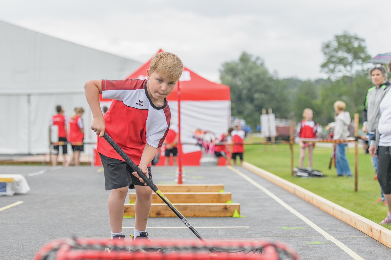 Der erste Wettkampfteil beinhaltete den Unihockeyparcours und die Pendelstafette. In diesen beiden Disziplinen konnten wir eine Note von 9.74 erreichen. Mit diesem ersten Ergebnis waren wir sehr zufrieden. Im zweiten Wettkampfteil ging es mit Weitsprung und Spieltest Allround weiter. Auch in diesem Teil lief es wie am Schnürchen und es wurde eine Note von 9.82 erzielt. Wir konnten uns kein besseres Zwischenergebnis vorstellen. Für den letzten Wettkampfteil motivierten wir die Kinder noch mal alles zu geben. Die letzten zwei Wettkampfdisziplinen waren Ballwurf und Hindernislauf. In diesen Disziplinen erreichten wir die gute Note von 8.70. Mit dem Endergebnis von 28.39 konnten wir nur Vermutungen aufstellen, dass es vielleicht aufs Podest reichen könnte, denn am Sonntag turnten noch weitere Vereine.