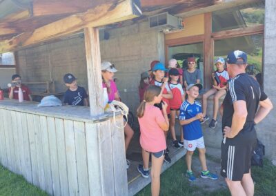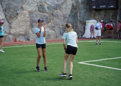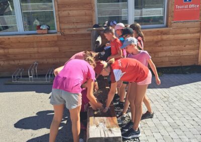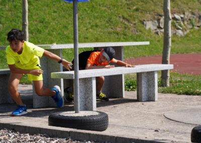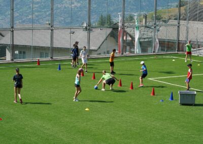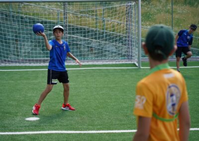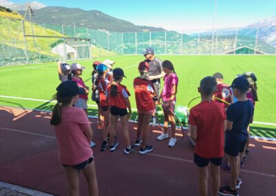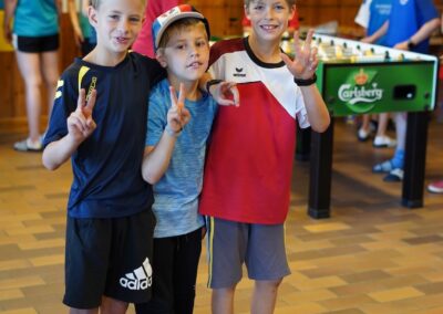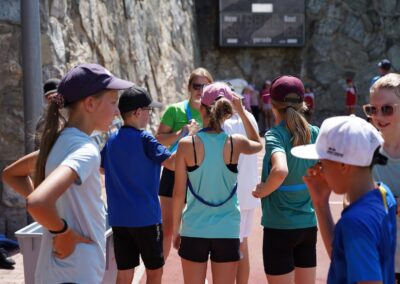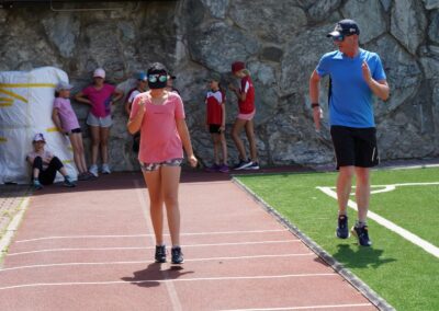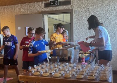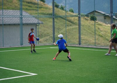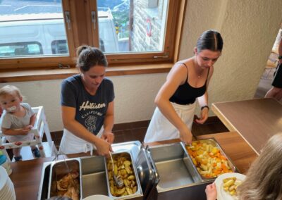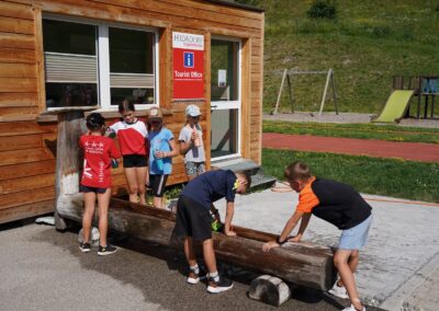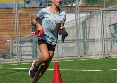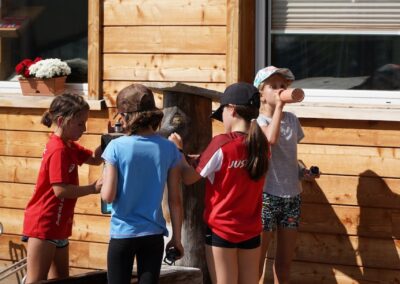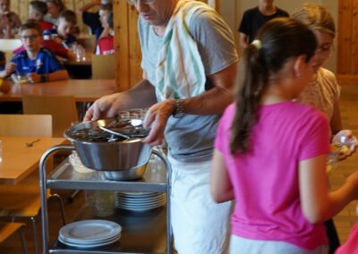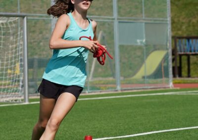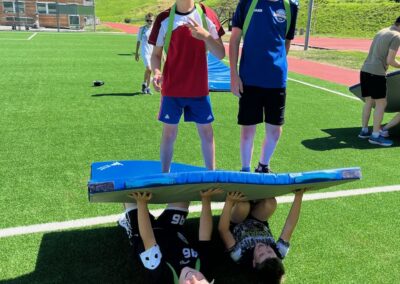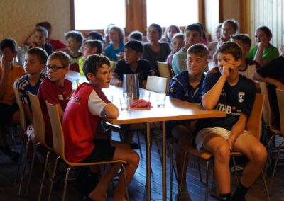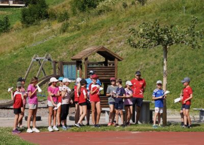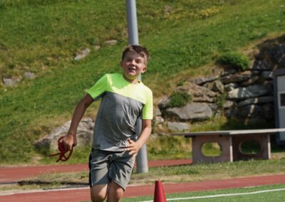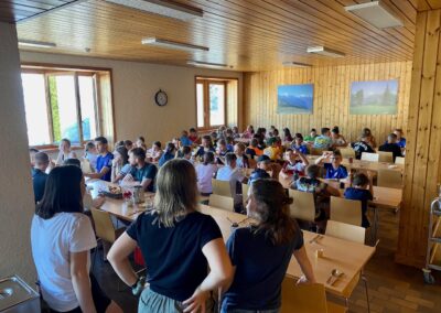 Heute wurden wir um 8 Uhr von den Leitern geweckt. Dann gab es um 8:30 Uhr ein leckeres Frühstück. Nach dem Frühstück haben wir erfahren, in welchen Altersgruppen wir die nächsten Tag Sport machen werden. Um 9:45 haben wir uns vor dem Lagerhaus getroffen. Dann haben wir uns mit unseren Altersgruppen auf den Weg gemacht. Wir waren joggen, haben Stafetten gemacht, Spiele gespielt und haben Leichtathletik gemacht. Um ca. 12:00 Uhr hat es Älplermagronen und Salat zum Mittagessen gegeben. Als wir alle fertig gegessen hatten, konnten wir uns noch für die Interessensgruppen eintragen. Zur Möglichkeit gibt es Leichtathletik, Spiel & Spass und Outdoor. Danach gab es ein Dessert (Vanillecreme). Wir hatten ca. eine Stunde Pause bevor es zum 2. Sportblock in den Altersgruppen ging. Wieder auf dem Sportplatz angekommen, haben wir weiter Sport gemacht. Einige machten Laufschulung, andere Weitsprung, einen Fitnesstest und die eine Gruppe spielte Volleyball und übte sich in der Technik. Als wir nachhause gekommen sind, gingen die ersten duschen. Frisch geduscht freuen wir uns jetzt auf das Abendessen und natürlich auch auf das Abendprogramm. Denn wir wollen herausfinden, für was wir den gefunden Schlüssel gebrauchen können.
